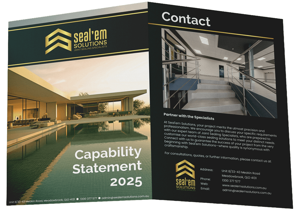Download our latest Internal and External Colour Charts along with the Capability Statement to explore our complete service capabilities, technical expertise, and colour matching options. These documents provide a clear overview of our qualifications, project experience, and the extensive colour selections available for both interior and exterior sealing applications. They’re the fastest way to evaluate how Seal’em Solutions delivers reliable, compliant, and high quality joint sealing across Australia.